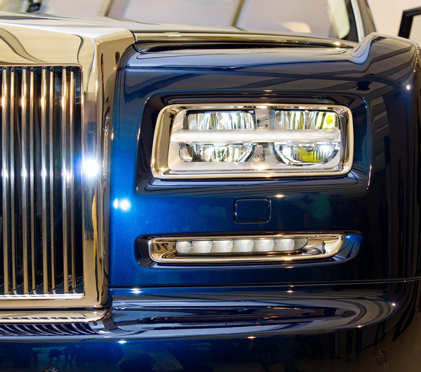 ![]() Phantom Series II在外觀上有著全新的車頭設計,包括保險桿和矩形頭燈部分,並首次將全LED頭燈引入車款的標準配備。使新車擁有更高亮度的白光,頭燈並具備主動式轉向功能,使頭燈光束可根據汽車的行駛方向來分配照明區域,轉彎時擁有更好的照明。主動式轉向頭燈系統亦可根據不同的行駛速度而調整投射到路面的照明幅度。