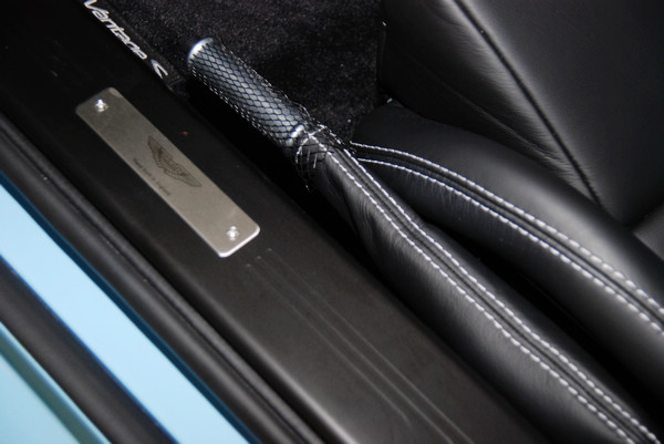 ![]() ▲車側的碳纖維車側散熱格柵也是車主選擇用以彰顯性能表徵之處。這次永三汽車接受客戶指定所引進的這款車,即是以全球賽道中經典聞名的Gulf海灣石油配色打造台灣唯一的V8 Vantage S車款,和一般車型最大不同在於沿用ASTON MARTIN Racing主要贊助商Gulf經典的Gulf Blue與環繞於經典造型水箱護罩周圍及自A柱延展而上的車頂Orange配色,當然同樣秉持ASTON MARTIN於英國Gaydon原廠精心費時的手工打造,以每輛車超過50小時的手工打磨拋光與稀有7層的完美賽車烤漆塗覆,無暇漆面與細膩處理更再次彰顯了這輛V8 Vantage S Gulf Livery限量版本有著截然不同的賽車氛圍營造與手工優雅細節。