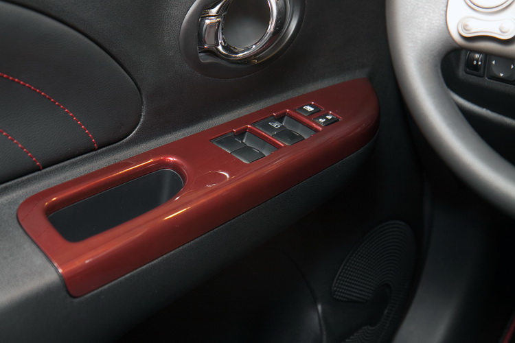 NISSAN March榮獲日本GOOD DESIGN設計大賞,櫻桃紅特仕版整體設計以時尚流行為基調,在車室空間內灑上櫻桃紅氛圍,高質感櫻桃紅色座椅縫線巧妙搭配富有春夏時尚元素的櫻桃紅專屬扶手飾板、便利手套箱、及櫻桃紅限量腳踏墊,讓車主從內而外感受專屬March的時尚品味。