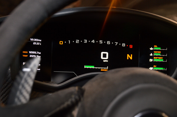 ![]() ▲價格不斐的P1,買家皆為身份地位具備一定等級的富豪,因此雖是追求賽道極致的跑車,內裝仍必須顧及足夠的舒適。門檻看起來這麼高的原因,是因為它其實是單體車身結構的一部分。![]() ▲數位化儀錶監控電池、水溫等資訊。注意到里程數已經跑了1285km嗎?沒錯,這部原型車搭載可用動力系統,可以隨時開上公路。![]() ▲新世代McLAREN超跑依稀可見稱霸90年代的F1線條,腰線相當優美。