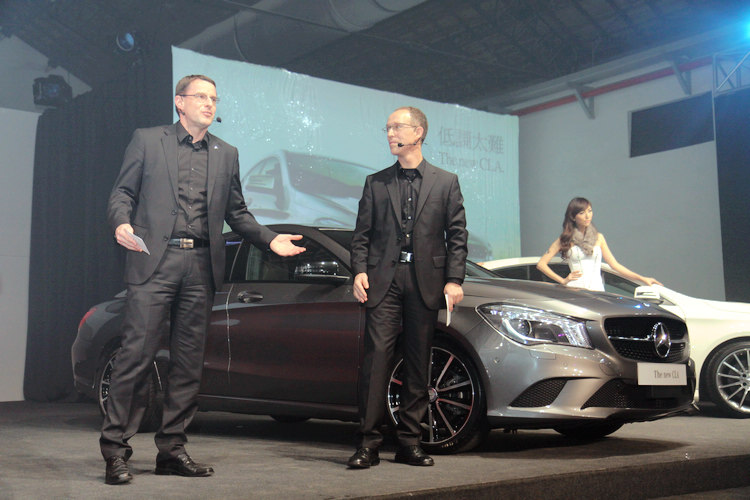 ![]() ▲台灣賓士總裁邁爾肯(左)與轎車業務行銷副總裁司達恆再度親自為新車進行產品介紹,並樂觀期待CLA的市場熱度。