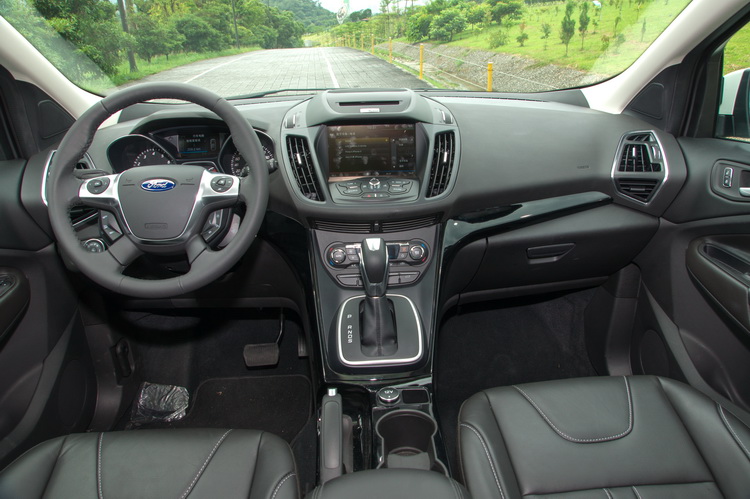 THE ALL-NEW KUGA內裝全面升級,無論是整體設計取向或是質感用料、科技與動感氛圍展現得淋漓盡致。首先就飛行式雙筒儀表為起點,將飛行概念同步延伸至多功能方向盤之上,並整合出相當完整的指令輸入鍵盤,包含有定速系統、多媒體操作、行車資訊與SYNCTM with MyFord TouchTM系統。
