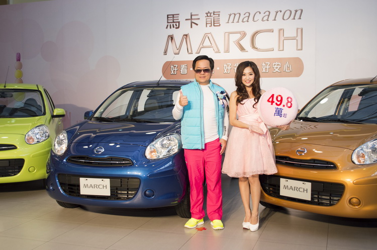 裕隆日產汽車推出2014年式NISSAN MARCH嶄新「寶石藍」車色,全車系共有8種如同法式甜品馬卡龍的繽紛亮眼外型,2014年式MARCH全車系標配舒適透氣皮椅,限量80台豪華版配備智慧行車安全顯示器及馬卡龍繽紛套件,超值甜美價新台幣49.8萬元起,購車即享浪漫貴婦下午茶及馬卡龍紓壓抱枕,並有機會抽中巴黎來回雙人機票,更可搭配首年日付80元,等同日付一顆馬卡龍的高額分期優惠專案。