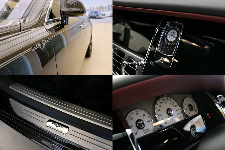 ![]() Rolls-Royce台灣總代理引進限量三台的Ghost V-Specification有寶石藍黑、黑櫻桃與石墨黑三款顏色,外觀搭配手繪V-Specification圖騰與車身腰線,突顯出車輛獨一無二的專屬感。內裝則以黑色皮革鋪成,並以棗紅色的緄邊與縫線作為點綴,完美詮釋出該車型所代表的極致力量與現代風格。其餘造型上與一般版本Ghost相仿。