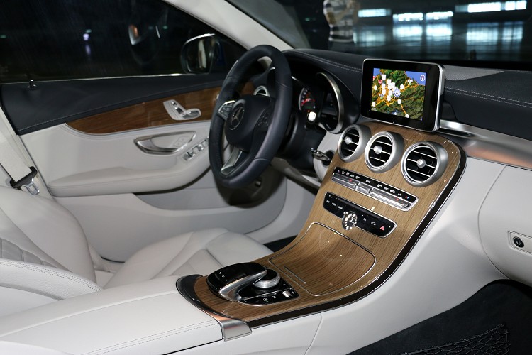 座艙內,雙筒造型儀表以鍍鉻裝飾提升質感,黑底白字的刻度搭配中央5.5吋TFT彩色多功能顯示幕,透過800X480的解析度讓行車輔助資訊更輕鬆判讀外,更可選配搭載Garmn MAP Pilot 中文衛星導航,輕鬆安排商務或個人旅程。全車系標準配備的Audio 20附觸控手寫板影音整合系統,以7吋彩色螢幕呈現3D視覺與旋轉木馬方式呈現,搭配可支援繁體中文的觸控手寫板、藍牙串流、手機上網等功能,透過彈指之間,將現代人習慣的智慧科技生活無縫接軌至The new C-Class座艙內。