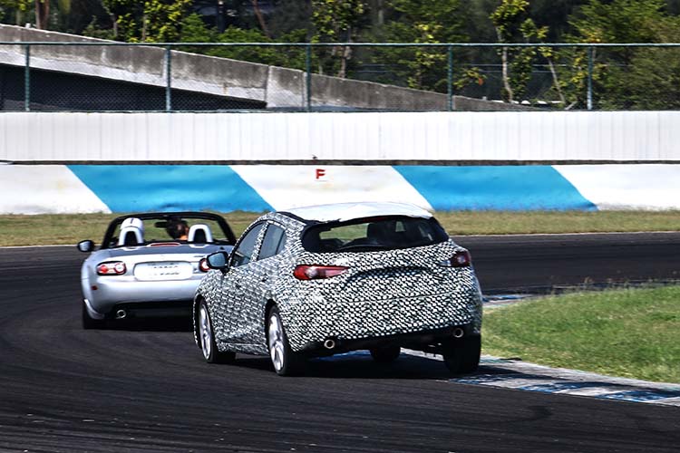 ![]() ▲認證車配備18吋輪胎,懸吊調校上並未刻意強調運動化。外觀雖有日方提供的偽裝貼紙包覆,但預期和前次展出的日規版車型不會巨大差異,仍維持MAZDA一貫的Kodo魂動設計語彙。至於本次提供試駕的掀背版採用的是18吋輪胎,不過由於B柱貼紙標明的是16吋,也可以預期未來上市後會因等級差異在這方面有所區隔。此外,試駕車頭燈為魚眼投射式設計搭配前後霧燈,不過尾燈及方向燈仍為一般燈泡而非LED,並採雙出尾管設計。 ![]() ▲認證車的偽裝貼紙據說也是日本原廠指定式樣,全車貼得密不透風,完全看不出原本的藍色車色。