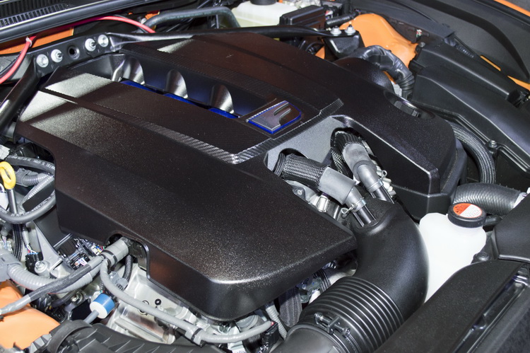在動力表現部分,對於跑車有極大熱情的總工程師矢口幸彥,相信駕馭樂趣不僅僅於速度,而是感官帶來的極致體驗,因此堅持使用自然進氣V8引擎,雖以IS F的5.0升引擎本體為基礎,但為了發揮最大性能,幾乎所有零件均經重新打造,同時採用剛性更強、能承受更高引擎轉速的鍛造曲軸、鈦合金進排氣閥門,擁有477.3hp/7100rpm最大馬力與54.0kgm/4800-5600rpm最大扭力,0~100km/h加速僅需4.5秒。