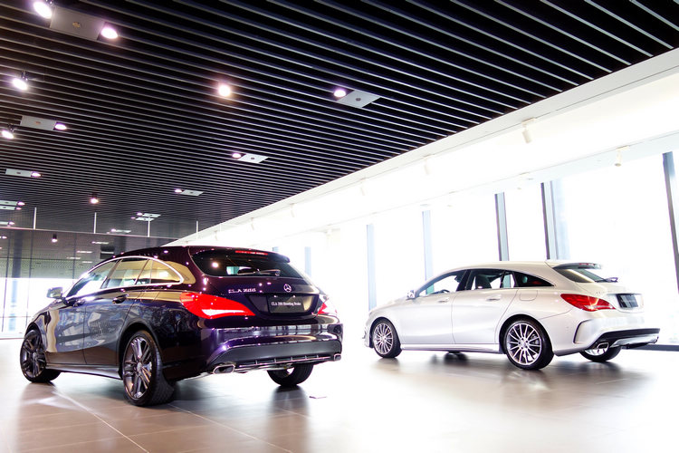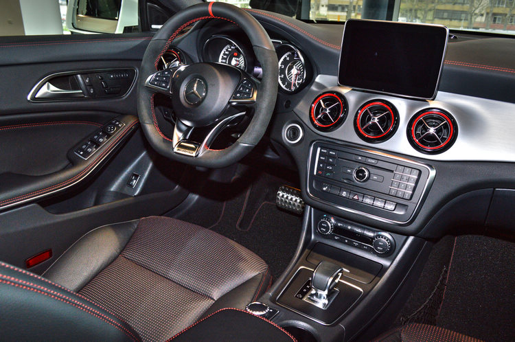 CLA 250 Shooting Brake![]() CLA 250 Shooting Brake則換上AMG跑車化套件,包含AMG前後保桿與側裙、18吋AMG五幅雙肋高光澤鈦灰色輪圈、銀色鍍鉻單柵鑽石型水箱護罩、跑車化懸吊、前打孔煞車碟/Mercedes-Benz字樣卡鉗、跑車座椅包覆ARTICO/DINAMICA及紅色對比縫線、縱向紋路淺色鋁質飾板、三幅平底跑車化方向盤包覆真皮與對比紅色車縫線、AMG腳踏墊與金屬踏板。