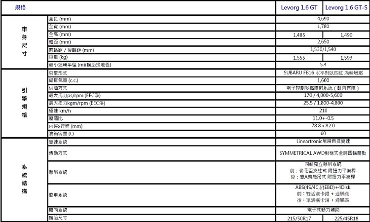 2015年車壇最令人矚目的全新車款SUBARU All-New Levorg自日本發表後,旋即受到台灣消費者及車迷朋友們的高度關注!SUBARU台灣意美汽車今日正式展開預售接單活動,All-New Levorg 1.6GT與1.6GT-S分別以122萬元及128萬元開放接單,敬請所有喜愛SUBARU的車迷朋友搶先入主為完美主義而誕生、為多重樂趣而存在的SUBARU All-New Levorg。