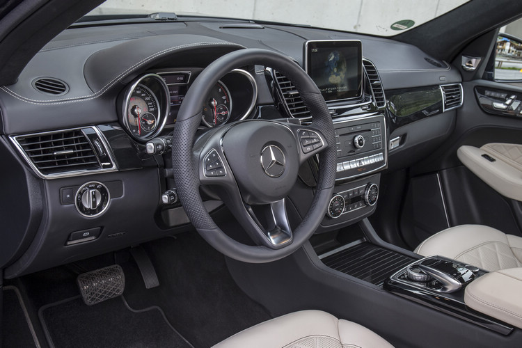 座艙配備Audio 20單片CD音響系統與7吋TFT彩色螢幕,具備MP3/WMA/AAC/WAV光碟播放、藍牙串流、利用手機上網、雙USB與SD卡插槽等規格。而在GLE 350d 4MATIC車型上,彩色螢幕升級為8吋規格,GLE 350d 4MATIC LUX車型更整合Garmin MAP PILOT中文衛星導航系統。熟悉的雙筒型儀表板內建4.4吋彩色多功能顯示幕,3輻多功能方向盤上可操作多達12種控制鍵。其餘標配還包括雙區自動恆溫空調、車內環景照明、雙前座全電動調整座椅,其中GLE 350d 4MATIC LUX車型更配備記憶套件。後座為1/3:2/3分離式,置物空間從基本的690公升可擴充至2010公升的等級。而內裝套件選擇上,還額外選擇了AMG內裝套件。