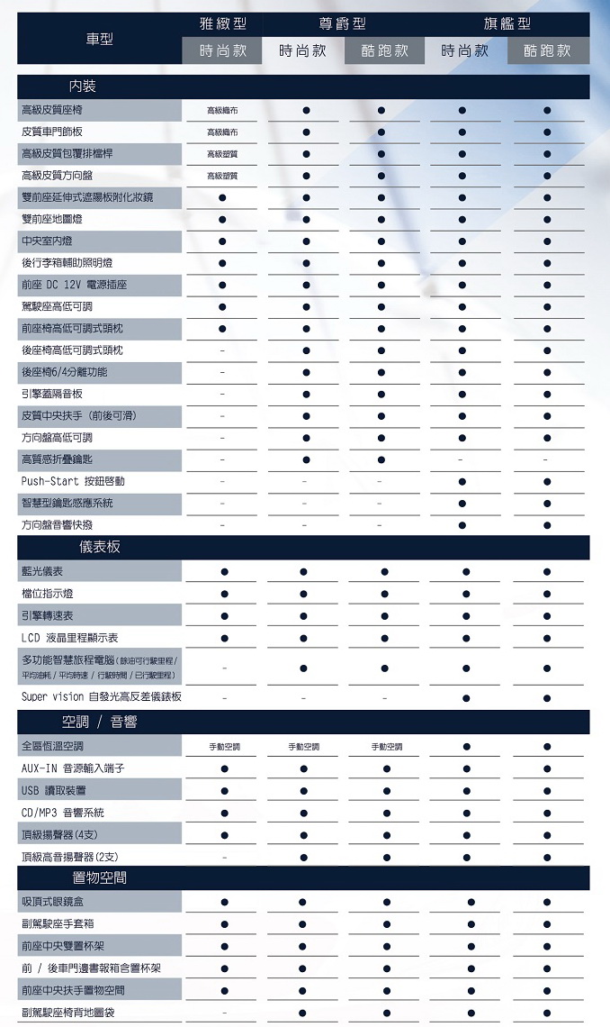 ![]() 南陽實業這次導入Verna 1.6共計推出雅緻型、尊爵型、旗艦型三個等級,各等級時尚款外,尊爵型與旗艦型另有酷跑款,以更強烈運動化外觀滿足消費者的個性主張。全國HYUNDAI展示中心同步啟動預接單,預售車價為:雅緻型時尚款56.9萬元,尊爵型時尚款61.9萬元,尊爵型酷跑款62.9萬元,旗艦型時尚款67.9萬元,旗艦型酷跑款68.9萬元,11月10日前訂車加贈高額預售禮。