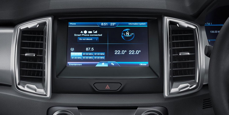 ![]() Ford Ranger的全方位特性,同時反應在車艙的空間和設備安排上。搭載福特SYNCR 2娛樂通訊整合系統,駕駛者在行車途中能夠以更便捷、安全的方式使用通訊裝置;而出色的車艙靜肅性,擁有更寬敞且耐用的車室空間,經過強化的靜音工程大幅阻隔車室外噪音,讓你享有豪華運動休旅車般的自在寧靜。