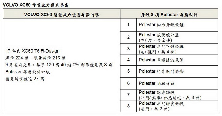 全新 17 年式 VOLVO XC60 T5 R-Design X Polestar限量推出