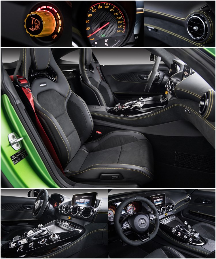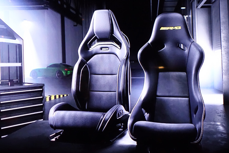 強烈競技風格![]() ▲輕量化科技材質結合空氣力學優化設計,造就極佳賽道及公路性能表現。外觀特色包括採用輕量化碳纖維寬體前葉子板(較AMG GT/GT S車型加寬46mm),前保桿更導入AMG主動空氣力學的進氣格柵與前下護板,對應車速可自動調降最多達4cm,於時速250km/h時可增加額外40kg下壓力;而碳纖維車頂、碳纖維車外後視鏡罩、以及前葉子板雙側散熱孔上的亮黑色散熱孔飾片則為AMG GT R的識別特徵。 ![]() ▲前後葉子板以及胎寬均較GT S更寬,提供更強大的抓地力與過彎穩定性。![]() ▲標配的內裝就已經極度競技化取向,而有意挑戰賽道的車主,座椅還可選配不可調整的賽車桶椅來確保最佳包覆效果。![]() ▲左邊為原廠標配之電動可調座椅,右邊則是作為選配的不可調賽車桶椅。