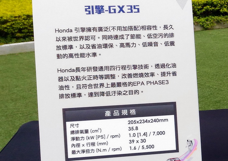 導入動力產品事業,帶給更多顧客生活上「使用便利的喜悅」![]() 為了顧客的喜悅,Honda Taiwan將持續深耕台灣市場,導入在日本已有65年歷史的Power Product事業。Honda的Power Product事業(動力產品事業)是以「汎用引擎所獲得的技術為基礎,對人們的工作及生活有所貢獻」為宗旨,在全球開展事業,並擁有每年600萬台以上的銷售實績。