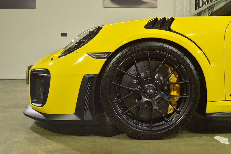 ![]() ▲考量到北美法規的要求,尾窗並未採用PC樹脂材質,但所採用的玻璃厚度極薄,因此重量仍得以減輕。此外,車室這組鈦合金防滾籠也強化了結構剛性,但實際上不符合FIA規範,因此能否直接參賽恐有疑慮。為了全面傳達全新911 GT2 RS源自賽車科技的輕量化結構概念,PORSCHE賽車運動部門開發出可減輕車重近30公斤的魏薩套件(Weissach Package),此套件大量採用包含CFRP碳纖維強化塑膠及鈦合金所製成的輕量化組件,例如前行李箱蓋、車頂、前/後軸上的防傾桿及連桿均以CFRP材質打造。 ![]() ▲前265/35 ZR 20和後325/30 ZR 21超寬跑胎,是PORSCHE至今為 911 跑車所配置過最寬的輪胎尺寸。