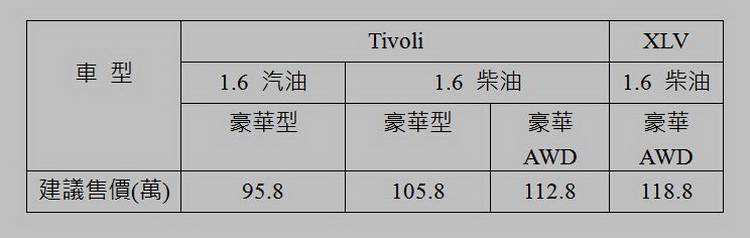 雙龍汽車在年初台北車展時宣布會引進跨界都會休旅Tivoli的小改款車型,同時全新導入其加長版本XLV。六月下旬兩車款正式發表上市,為回應國內安全意識抬頭趨勢,Tivoli與XLV全車系標配同級最高7 SRS氣囊、AEB自動緊急剎車與LKA車道維持輔助系統,搭載24項主被動安全配備與71% HSS高強度鋼材車體結構,以同級距中高標的主被動安全作為訴求重點之一。