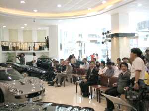 經過漫長的等待,英國蓮花(LOTUS)終於正式進駐台灣了,總代理EMC歐盟汽車選定六月八日於安康路展示間進行了盛大的記者會,當然迎接這樣具有威名的跑車品牌,多家汽車專業媒體均抵達現場一睹跑車風采,現場正中央就停著一輛LOTUS Exige,旁邊還有已停產之超級跑車XJ220、BMW E46 M3和XJ8、XKR兩部JAGUAR車種。為了襯托該車之氣勢與進軍台灣之決心,總代理為大家安排了精彩之歌舞秀,並邀請了英國駐台辦事處處長、蓮花全球行銷總裁與會,足見其對蓮花跑車之厚望和期許。