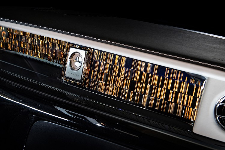 ![]() 勞斯萊斯台灣總代理盛惟與英國原廠爭取下搶到僅此一台的配額,而本次Phantom Tranquillity在內裝中採用了專屬且稀有的材料,在Phantom車系專屬的畫廊儀表飾板 (Gallery) 中,Tranquillity採用了獨特的太空級別鋁材料及24K鍍金製成,其設計靈感來自英國天雀太空火箭所使用的X射線編碼孔徑護罩。而勞斯萊斯這次更是獨樹一幟,為了進一步彰顯了太空探索能力,首度運用年齡約為35~40億年的隕石鑲嵌在中控台音量控制旋鈕中,並將其隕石發現的經緯度刻於之中,旋鈕另外通過拋光及加入24K鍍金進一步增強了其寧靜奢華的氣勢,使其與畫廊儀表飾板中的鍍金表面相呼應。