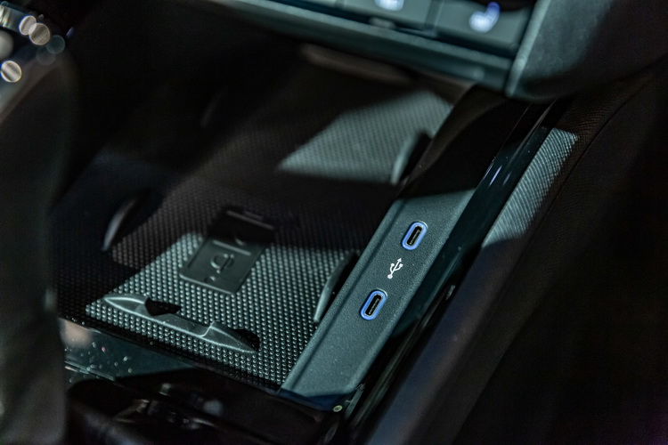 最重要的一項特色,考量到智慧型手機已經是人手一機,ŠKODA Taiwan特地將手機無線充電板變 成SCALA標準配備,再加上前後座各兩個USB Type-C充電座,當駕駛要使用Smart Link +智 慧型裝置互連系統套件而其他乘員要滑手機或是看iPad時也不用去搶USB充電座。