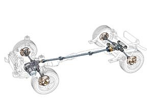 ![]() ▲RX4搭載由奧地利名廠Steyr Puch協力開發的全時四驅系統,是自93年之後,RENAULT首度復出四驅車界的作品。機械設計方面,RX4搭載的是Scenic頂級車款所使用的2.0升DOHC 16V直四引擎,但真正值得注意的,卻是車上那套恆時四輪驅動系統。由奧地利名廠Steyr Puch(該廠同時也和MERCEDES合作,發展M-Class的四驅系統)開發的這套系統,是以Scenic原本的變速系統為基礎,保留一樣的換檔邏輯和齒比,但增加了黏性耦合扭力轉換器配合電子式的四輪TCS循跡控制系統,足以應付日常生活行車與偶爾的越野活動所需。