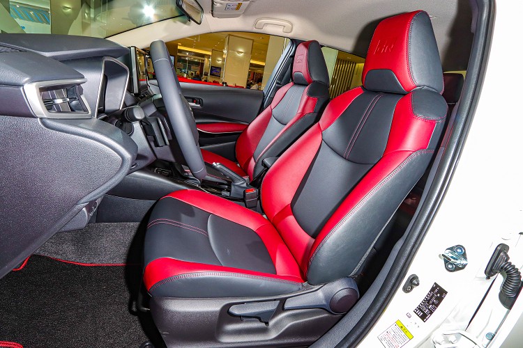 全新Corolla Altis GR Sport擁有專屬跑格套件,霸氣的蜂巢格狀進氣壩,搭配勁黑車外後視鏡、燻黑LED光條式尾燈、17吋亮黑切削鋁圈,以及車尾GR Sport專屬銘板,運動化的強悍外觀,宛如蓄勢待發的猛獸。車室採用熱血感十足的專屬紅黑雙色內裝,前座頭枕附GR字樣烙印,汽油車型另搭載方向盤換檔撥片附七速手自排功能,各種專屬跑格設計燃燒熱血靈魂。