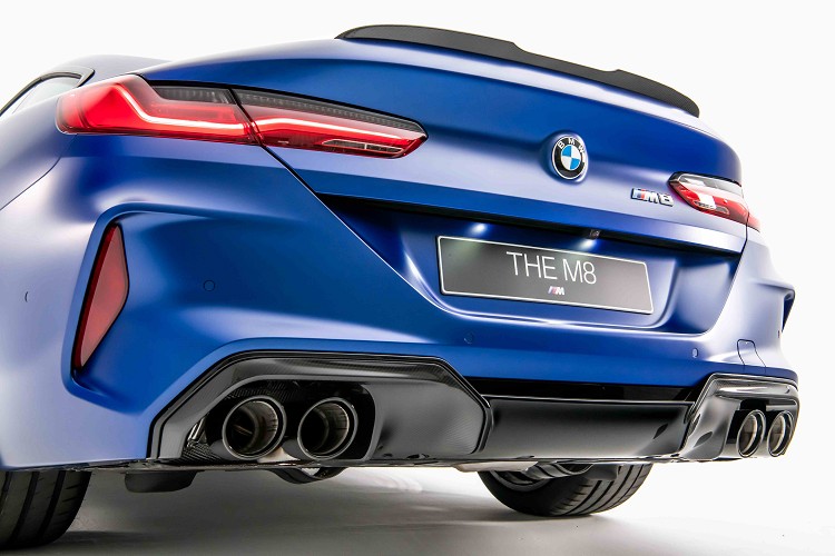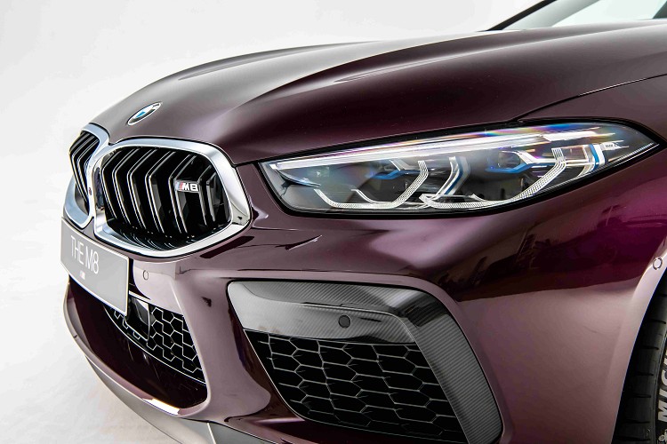 百年來堅持以頂尖工藝品味與創新科技打造車款的BMW以優雅流暢的跑車線條勾勒出BMW M8令人震懾的磅礡氣勢,無論是俐落的雙門Coupe設計或大器非凡的四門Gran Coupe車款,BMW將全新BMW M8佇立於頂級奢華舞台的聚光燈下。鑲有M8銘牌的黑色高光澤雙肋造型水箱護罩與鍍鉻外框,搭配侵略性十足的湛藍色智慧雷射頭燈(含Glar-free光型變化功能)頭燈,讓BMW M8一出場就奪取眾人眼光;銳利的引擎蓋與車側鈑件肌理線條,一路延伸至後擾流尾翼,營造結合力與美的速度律動;前下擾流與前進氣壩搭配車側如迴力鏢造型的導流氣孔,除滿足賽道規格散熱系統的嚴苛進氣需求,更注入蓄勢待發的競速氣勢;完勝風阻的M空力套件與全新BMW M8專屬的20吋M星幅式811M型輪圈,展現出不容錯認的經典M系列血統;兼具輕量化與堅固強韌的M碳纖維車頂,為這台頂級跑車在肆意馳騁、破風而行時如虎添翼。