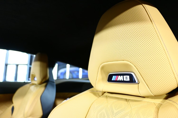 全新BMW M8 Coupe與M8 Gran Coupe的內裝設計富含與生俱來的跑車性格與內涵,使用Merino真皮的M專屬雙前座電動座椅含記憶、通風、加熱與電動腰靠功能,搭配黑色高光澤窗框、M縫線安全帶、真皮包覆儀表檯、碳纖維材質飾板與Individual Alcantara麂皮車內頂篷,為車室增添不可言喻的奢華感受;後座採用40/20/40分離可傾倒後座椅背,讓空間更能靈活運用。BMW M8 Gran Coupe車型為讓後座乘客有更舒適的乘坐體驗,除頭部與肩頸有更寬闊的活動範圍,更較Coupe雙門車款增加201mm的腿部區域,搭配豪華型四區恆溫空調以及電動後窗簾、後檔窗簾及後側窗簾,營造出極舒適且私密的個人空間。