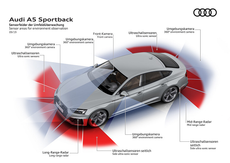 ![]() Audi A5 Sportback透過2.0升缸內直噴汽油渦輪增壓引擎搭配12V輕型混合動力系統,不僅分別可於40 TFSI及45 TFSI quattro 兩款不同動力輸出之車型,展現最大馬力204 hp / 265 hp與320 Nm / 370 Nm最大扭力輸出表現,更可於車速55 km公里/小時至160 公里/小時,可自動於引擎熄火狀態下滑行,最長達10秒,此套12V輕型複合動力系統還可提供最多達6 kW能量的動能回收,創造高效率兼具節靜的引擎效能。