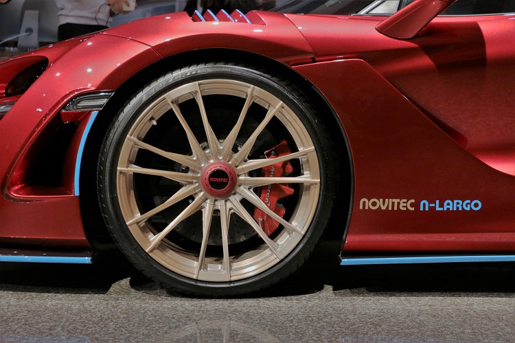 寬體版本的前葉子板和後側輪拱組件令人驚嘆地向外拱出,優異的精度與強度可完全替代原廠組件,NOVITEC N-LARGO全車套件都可完全替換原廠品而毋須另外施工即可完美地組裝於車體結構上,大幅向外擴的前後輪拱即可容納前後軸上加寬且加大的MC2鍛造輪圈。採用賽車級中心鎖設計的鍛造輪圈也是為NOVITEC N-LARGO專屬打造,這套輪圈是與美國知名的輪圈大廠Vossen所合作開發,採用高科技鍛造技術生產的合金輪圈具有極為輕量化與超高剛性的優勢,減輕簧下質量也助長了NOVITEC 720S N-LARGO的動態性能。