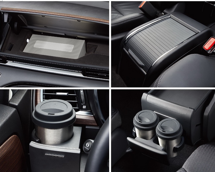 擴大乘員舒適便利性、車室靜肅性,打造人車一體的極致默契及創造極致感動的駕乘體驗 內裝部分本次改款除新增「Reservation Lock預約上鎖」功能、「Walk-Away Lock離開立刻上鎖」及「Hands-Free感應式電動尾門附自訂開啟高度記憶」等配備,以提升先進科技感受外,更將儀表升級為7吋「TFT彩色液晶儀表」,與類比速度表相結合,以容易理解及高辨識性的方式顯示各種資訊;通過增加駕駛座出風口伸縮置杯架和新的助手席隱藏式上掀置物盒,中央滑蓋式置物箱(登峰版七人座)、四個大電流2.5A安培USB充電端子(登峰版七人座),室內置物、機能空間變得更加便利使用。