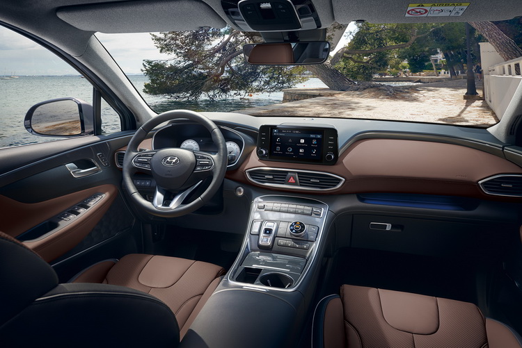 寬敞與舒適再提升 人性與科技打造大七人座空間 新SANTA FE 外觀大膽求新,內裝亦邁向高質感進化,選用頂級深棕雙色材質鋪陳車室豪華氛圍,細膩縫線層疊高級鑽石紋真皮座椅,並具備雙前座通風加熱/多向電動調整(附4向腰靠與2向腿靠),以及駕駛座2組記憶與Seat easy access駕駛座輕鬆進出裝置,提供無可挑剃的舒適體驗。新SANTA FE 亦全新導入12.3吋TFT-LCD全尺寸高解析度數位儀錶、8吋多媒體系統(支援無線Apple CarPlay & Android Auto),高置式鞍座控制台以及國內款首度出現的SBW電子線傳排檔系統,整合加入Qi無線充電座與DRIVE MODE多重駕馭模式控制介面,完備兼容人性與科技的雙重特性。