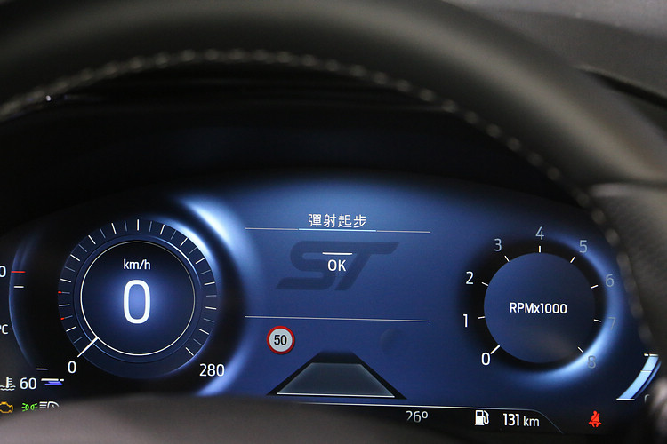 ![]() ▲Focus ST外觀配備競技型 Performance Pack套件突顯純正鋼砲血統。外觀設計方面,配有專屬ST銘牌標誌的車頭蜂巢狀水箱護罩、ST專屬運動化大型擾流尾翼、雙邊單出尾管、ST專屬迎賓踏板與車尾ST專屬銘版,另外,Michelin 19吋 Pilot Sport 4 S高性能跑胎及大型紅色卡鉗(前雙後單活塞組)也是手排款的標準配備。內裝設定上,同樣配置運動碳纖維紋路飾板搭配闇黑頂篷、ST專屬RECARO跑車座椅、位置優化的三踏板設計,而ST專屬平底運動化方向盤則於右側多功能按鍵附「S」按鍵與「Mode」選擇模式鈕。 ![]() ▲12.3吋全彩LCD液晶智慧多功能儀錶板,並內建彈射起步功能。![]() ▲Focus ST 6MT不僅滿足源自賽道的熱血信仰,鋼砲車型更完美符合日常實用。