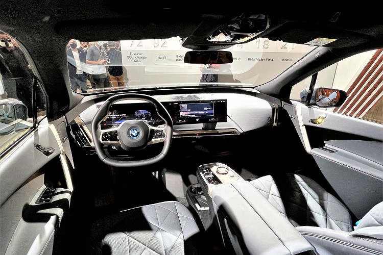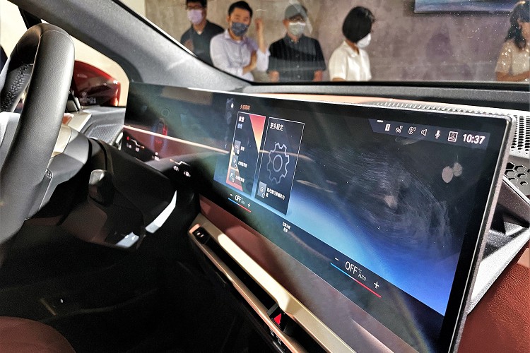 前衛俐落的車身線條,是全新BMW iX給予眾人的搶眼形象,而進入座艙所迎面而來的,更是BMW跨越傳統框架的無際創新,奠基於豪華與由電而生概念,導入由12.3吋虛擬數位儀錶結合14.9吋中控觸控螢幕所構成的全新開發一體式懸浮曲面螢幕,結合全新世代BMW iDrive 8.0使用者介面、車況抬頭顯示器、全新六角造型多功能方向盤、ConnectedDrive智慧互聯駕駛服務、RSU遠端軟體升級、無線智慧型手機整合系統、擴增實境導航與全新世代BMW智慧語音助理2.0。