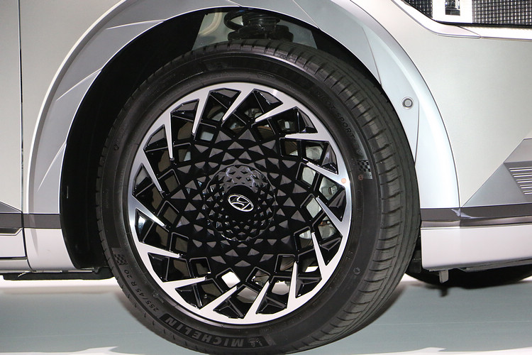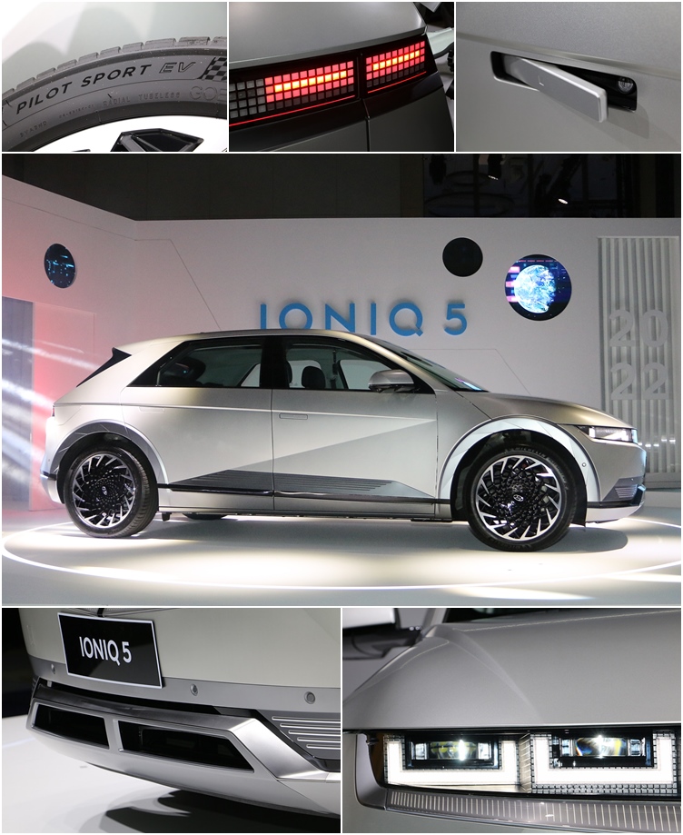 外觀造型![]() ▲Hyundai在台推出以E-GMP 電動車全球模組化平台打造的ioniq 5電動車。IONIQ為HYUNDAI全新電動車子品牌,本次上市的ioniq 5則是該品牌第一款電動車,立體線條的外型融入創新參數化元素,科技感十足的數位像素LED日行燈及尾燈組,識別燈和鈑線設計皆呈現數位印象。 ![]() ▲全新ioniq 5立體線條的外型融入創新參數化元素,設計風格迥異於時下的電動車。![]() ▲外觀隨處可見其數位像素的設計概念,同時車胎還採用專為電動車最佳化設計的款式。
