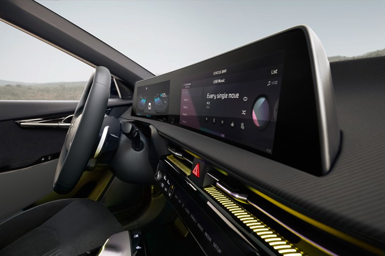 ▲Kia EV6搭載雙12.3吋全景曲面顯示螢幕,搭配64色可調式氣氛燈,為車內的視覺感官帶來盛大饗宴。