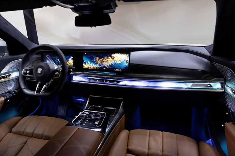 奠基於對於生活質感與自我頂尖的追求,全新世代BMW 7系列為經典駕駛者導向座艙下了全新註解,採用全新世代由12.3吋虛擬數位儀錶、14.9吋中控觸控螢幕所構成的一體式曲面螢幕搭配BMW iDrive 8.0使用者介面,結合全新的BMW座艙環繞光幕,將座艙照明與控制介面進行整合,大幅降低實體按鍵的數量,從人性為出發帶來更多溫暖,使整體操作介面以更符合人體工學的方式面向駕駛者,而7系列首度採用的頂級水晶中控套件及全新的排檔操作介面,更為座艙帶來更顯精湛的豪華尊貴座艙質感,完美融匯豪華與前衛科技的同時更為座艙鋪陳更多暖心與溫度。