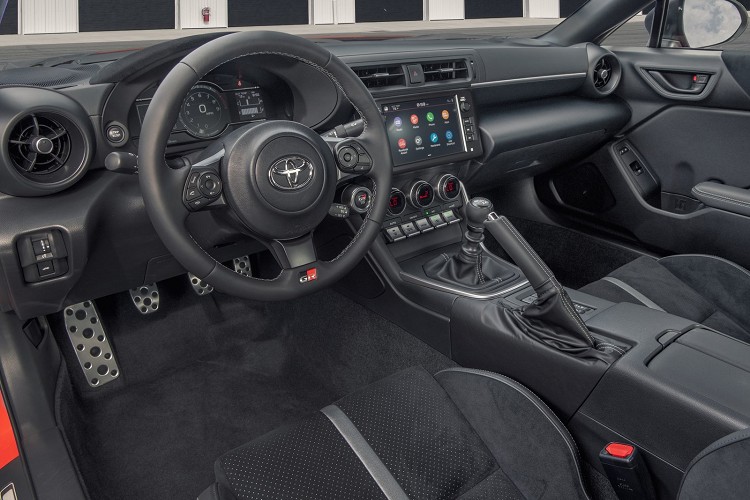 ![]() 全新世代GR86外觀上透過位置較高的引擎蓋前緣線條凸顯車子的低重心與前保桿的寬闊度,車尾輪拱也給人厚實的肌肉感。車頭GR專用的「Functional Matrix」水箱罩造型熱血也有更好進氣效率。車內操控介面將按鍵旋鈕集中於中控台與方向盤上並對配置做了優化,讓駕駛者可以直覺操作,將注意力集中於開車上。儀錶為七吋TFT液晶螢幕在開車前還會顯示彷如水平對臥引擎活塞運動的歡迎動畫來迎接車主。
