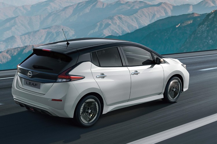 全新2023年式NISSAN LEAF車身藉由模擬實際空氣流動環境進行空氣力學開發,垂直切削車體兼具導流和隔絕噪音,搭配具擾流功能尾翼,降低氣流阻力,減少風阻所造成的能源損耗,更首度換上NISSAN新世代廠徽,外觀採用全新設計V-motion黑化水箱護罩、以及全新17吋六爪式電馭鋁圈,融合科技、現代、先進為一體的設計感。車色以珍珠白車身搭配淬鍊黑車頂two-tone設計為主,另外可以相同車價接訂生產天空藍車身搭配淬鍊黑車頂及淬鍊黑二款車色,供車主多種選擇。內裝導入高質感皮椅,附前/後加熱座椅功能,提升駕駛及乘客的乘坐舒適度。