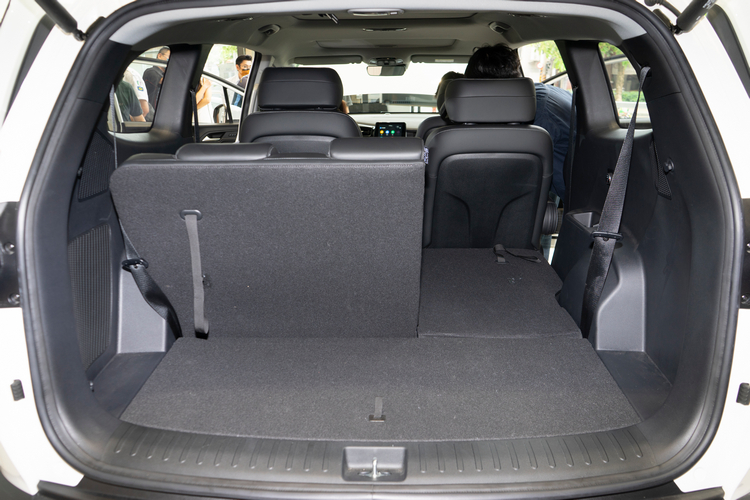 ▲第三排座椅椅背前倒後可形成平整的後方行李置物空間