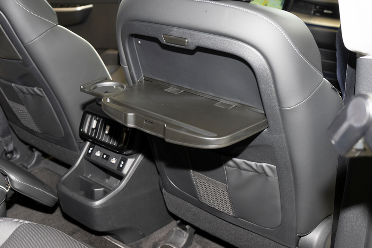 ▲前排椅背有摺疊小餐桌/飲料架設計