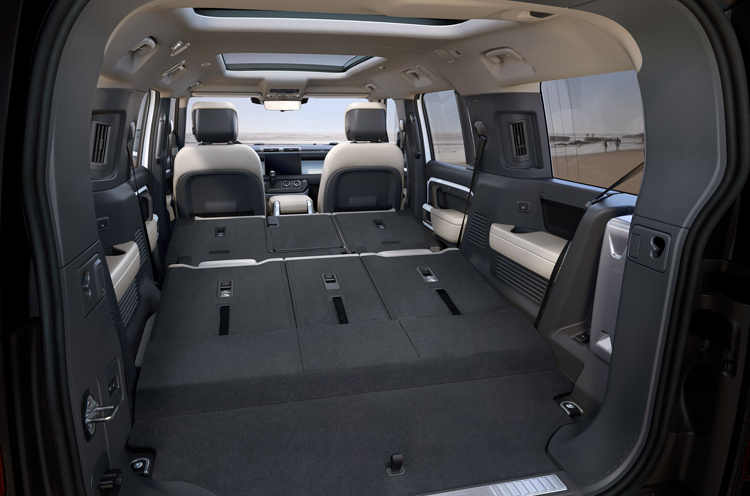 寬敞舒適空間,同時承載八人冒險啟程Land Rover 工程師透過在車體結構上重新配置內部空間,創造出令人驚豔的車室空間表現。向後延伸 340 mm 的車尾設計,Defender 130 軸距一舉增加至 3,022 mm,營造出毫不妥協的三排全尺寸配置。雙前座座椅具備 14 向電動調整、記憶與通風加熱功能,第二、三排亦具備加熱功能,包含第二、三排座椅具備四組 ISOFIX 兒童座椅套件;進出第三排時透過第二排座椅前、後滑動並向前折疊以提供寬敞的開口。雙後排座椅皆可透過 40:20:40 分離靈活調整,在全部收折的情況下可提供高達 1,876 升的巨大置物空間,即使在三排的配置下,置物容量也具備 290 升。座椅採用劇院式設計,結合更大面積的窗戶與車頂全景玻璃天窗和第三排上方固定式天窗,為車內的每位成員提供更為通透明亮的空間感受。 中央 11.4 吋曲面懸浮式觸控螢幕搭載最新 Pivi Pro 資訊娛樂系統,透過清晰直覺的顯示介面,優化對車輛主要功能的操控。系統支援無線 Apple Carplay 與 Android Auto,並具備 OTA 無線軟體更新功能,可使車載系統隨時保持在最新的狀態。四區恆溫空調系統具備首次搭載於 Defender 車系中的空調進階負離子車艙空氣淨化系統,可監測車室內二氧化碳濃度,確保所有乘客都能體驗到最佳的空氣品質。另具備多項科技舒適配備如抬頭顯示器、手機無線充電、前座中央扶手製冷功能,提供更為便利舒適的駕乘體驗。