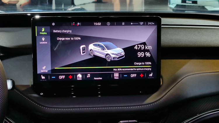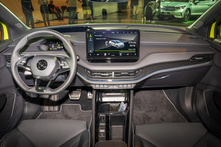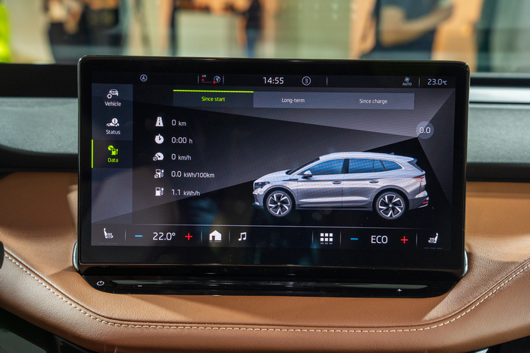 還可以透過MySKODA手機APP來操作專為電動車提供的功能如遠端充電控制、上車前預開空調冷/暖氣等。所配置的中控台螢幕更是品牌目前最大的13吋;顯示基本與重要行車資訊的數位儀錶則為5.3吋。抬頭資訊投影顯示幕則為選配。