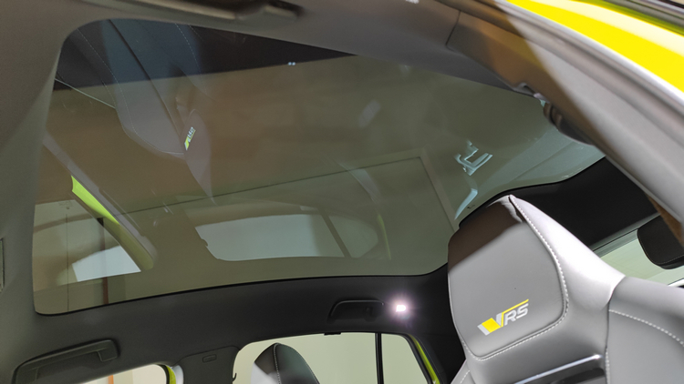車室內裝以黑色為主調搭配碳纖+拋光鋁合金飾板,配合RS跑車座椅、多功能方向盤(具握觸感應偵測)營造運動化氛圍。舒適便利性配備則包括三區恆溫空調、手機無線充電板等。環景天窗、後座遙控釋放機構等則為選配。