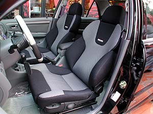 ![]() 價格多一萬,配備上竟然也多一萬的價值!除了ABS系統外,Tierra RS 2.0增加EBD、鑰匙晶片防盜系統,因此多花一萬元一點也不冤枉!外觀維持以往RS車型殺氣十足的大包圍及尾翼,尤其是搭配黑色車身,威猛的氣息令人熱血沸騰。內裝也是十足的陽剛味,MOMO賽車方向盤、RECARO高低雙向電動調整賽車椅(附座墊延伸裝置、手動腰部側墊調整、氣動腰靠、後座控制椅背前傾功能)、類鈦金屬飾板加上深色內裝的搭配下深具戰鬥氣息。音響系統為12支揚聲器加一支重低音單體,炫彩的2-DIN主機也夠勁爆的,電動天窗、鋁圈、倒車雷達、CD也通通納入標準配備中,操控優異、Q味十足的懸吊設定也頗能迎合加速動力,整體設定都嗅得出性能、超值的味道。