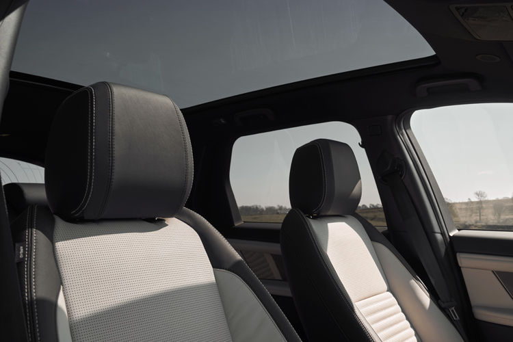 全新改款Discovery Sport奢華的座艙氛圍來自精雕細琢的內裝材質與工法,中央鞍座採用結合鋁質飾件的新式排檔座,優雅的三輻式多功能方向盤則採用著重永續性的非皮革材質包覆,為營造更加明亮、寬敞且舒適的駕乘空間,三排座椅採用劇院式配置,確保全員同享最佳視野,列為P250 Dynamic SE高階車型標配的全景式固定玻璃天窗,更能進一步強化與戶外風景融為一體的沉浸式感受。