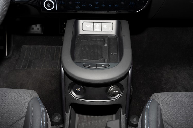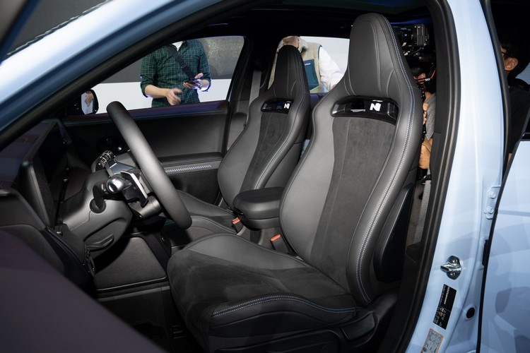 為滿足激烈操駕需求,IONIQ 5 N將原有活動式中央鞍座機構改為固定式中控台,下方兩側並裝上保護膝蓋同時有助於激烈操駕時擔任支撐點的軟墊。另外,雙前座N Performance單體椅背桶型賽車座椅,以輕量化人造麂皮包覆,椅背留下可以安裝四點式或者六點式安全帶的預留孔,對應日常駕馭保留加熱、通風功能,維持出行乘座舒適性。