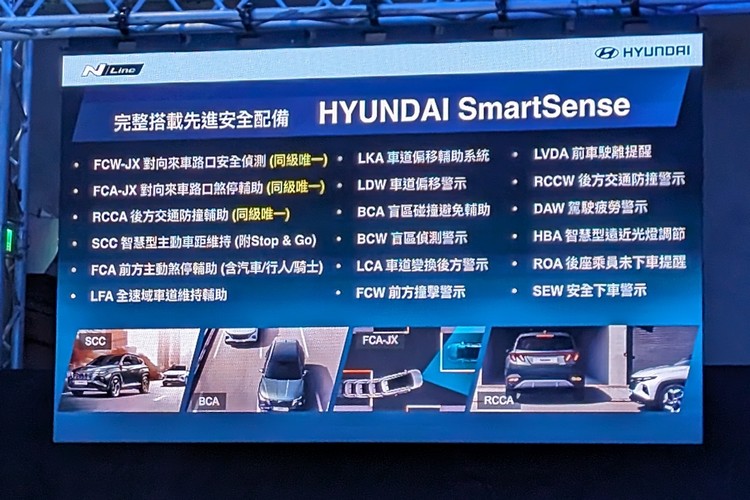在安全技術方面,TUCSON L N Line更是擁有高達18項的「HYUNDAI SmartSense」先進安全科技。這些技術包括多項同級獨有的功能,如FCW-JX對向來車路口安全偵測、FCA-JX對向來車路口煞停輔助、RCCA後方交通防撞輔助、BCA盲區碰撞避免輔助等。此外,還具備了LV.2等級的SCC智慧型主動車距維持(附Stop & Go)、LFA全速域車道維持輔助、LKA車道偏移輔助、FCA前方主動煞停輔助等功能,以及BCW盲區偵測警示、SEW安全下車警示和LVDA前車駛離提醒等安全提示功能,全面守護著乘車安全。