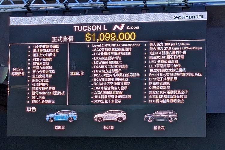 HYUNDAI性能品牌N Brand近年來多次在WRC賽車運動、TCR及24小時耐久賽取得勝利,HYUNDAI汽車將其致勝關鍵應用於新世代造車的性能操控,打造日常即能享受熱血駕馭樂趣的車款,N Brand起源韓國南陽研發設計中心,在紐柏林賽道進行嚴酷測試調校,造就品牌市售車款與生俱來的賽道熱血基因。這次總經銷南陽實業則是發表內外裝處處都是運動化風格配備的TUCSON L N Line,正式售價109.9萬元。