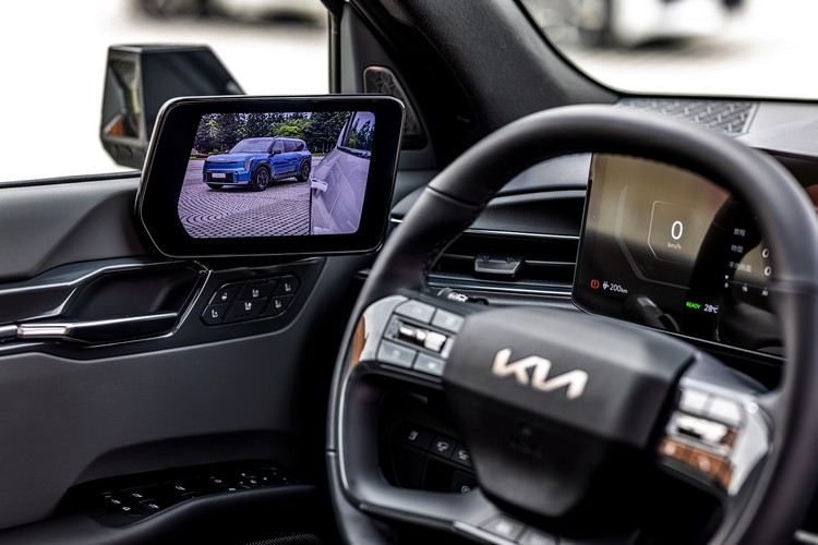 ▲EV9提供多項便利科技配備,據稱有半數訂車的車主都選配了其中的電子數位後視鏡套件。